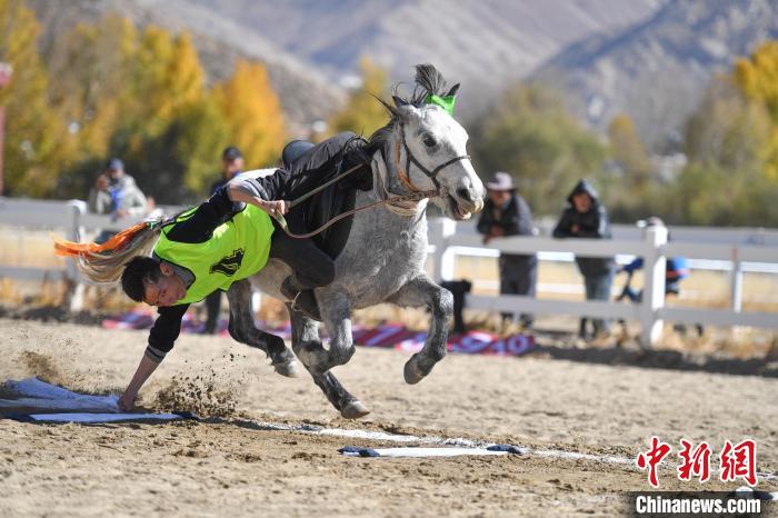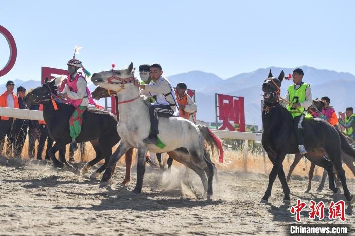 圖為西藏青少年民族傳統(tǒng)馬術(shù)比賽現(xiàn)場。中新社記者 貢嘎來松 攝