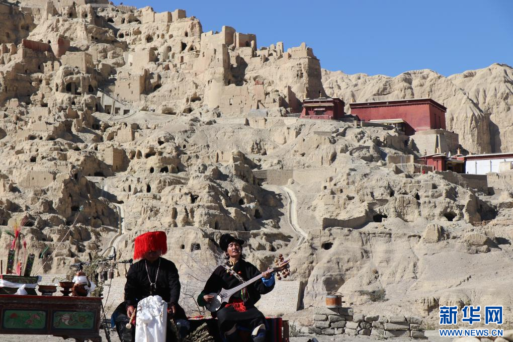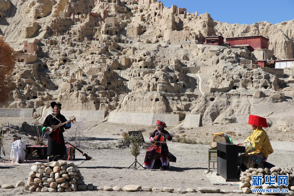 這是11月9日在古格遺址前的演奏現(xiàn)場(chǎng),多名樂(lè)手正在合奏西藏傳統(tǒng)音樂(lè)。新華社 發(fā)
