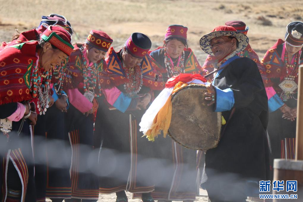 這是樂(lè)手格瑪扎西群覺身著傳統(tǒng)服飾進(jìn)行表演。新華社 發(fā)