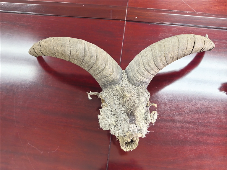 盤(pán)羊頭骨(含角)。