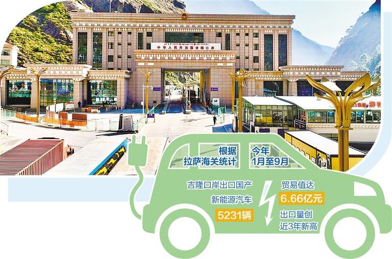 在位于日喀則市的吉隆口岸,裝載著一輛輛國(guó)產(chǎn)新能源汽車的大卡車正緩緩駛出國(guó)門(mén),駛向尼泊爾。今年以來(lái),新能源汽車出口形勢(shì)良好,貿(mào)易值屢創(chuàng)新高,成為西藏外貿(mào)新的增長(zhǎng)點(diǎn)。根據(jù)拉薩海關(guān)統(tǒng)計(jì),今年1月至9月,吉隆口岸出口國(guó)產(chǎn)新能源汽車5231輛,貿(mào)易值達(dá)6.66億元,出口量創(chuàng)近3年新高。