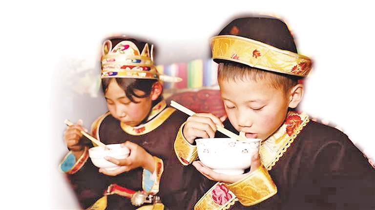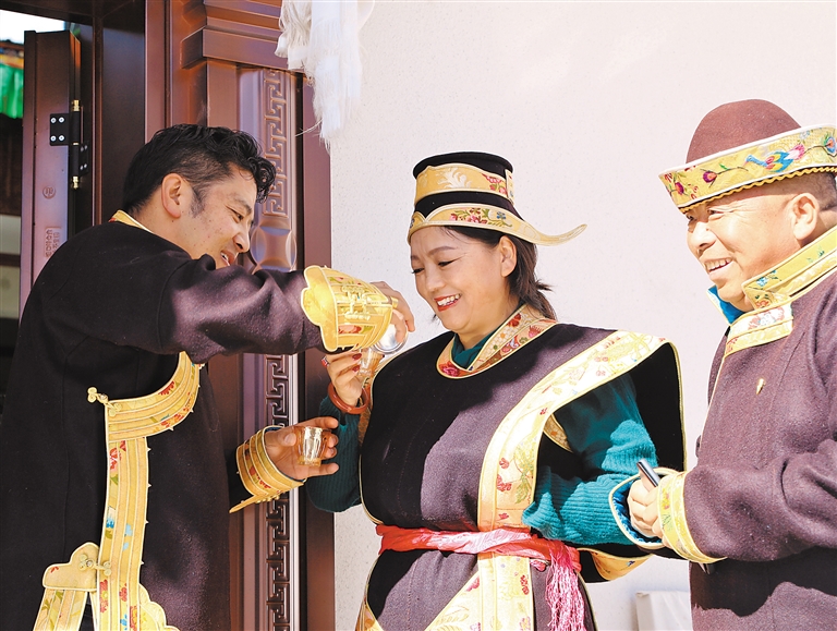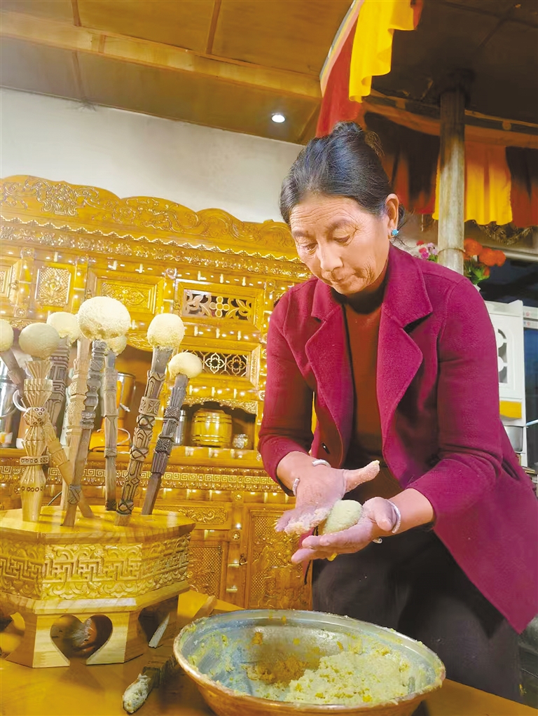 “切瑪”送祝福,客人新年期間做客工布家庭,主人會(huì)端出象征人壽年豐的切瑪迎接貴客,祝愿他們來(lái)年平安順?biāo)欤?/p>