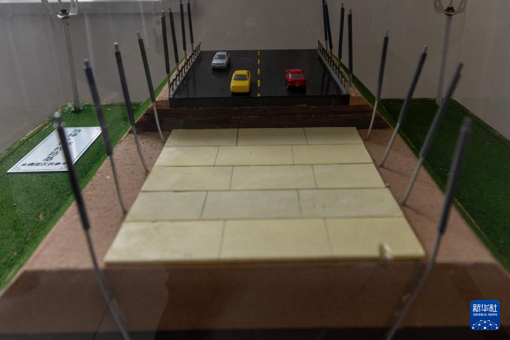 這是在中交第一公路勘察設(shè)計(jì)研究院有限公司格爾木觀測(cè)研究基地拍攝的“熱棒加X(jué)PS板路基”模型(12月3日攝)。新華社記者 姜帆 攝