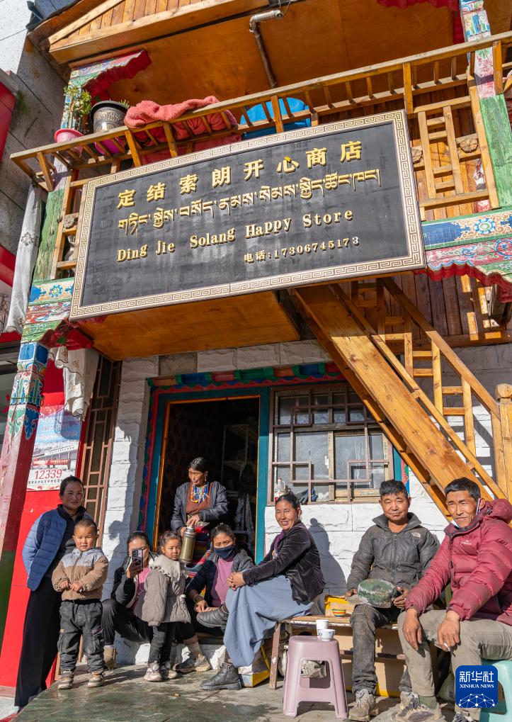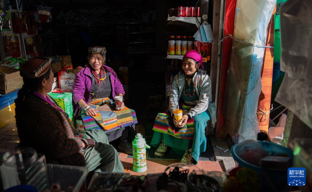 12月13日,陳塘鎮(zhèn)夏爾巴群眾坐在商店門(mén)口。