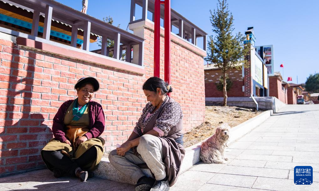 12月15日,達(dá)曼新村的婦女坐在家門(mén)口聊天。新華社記者 丁增尼達(dá) 攝