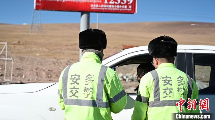 圖為安多縣公安局交通管理中心交警在唐古拉山口執(zhí)勤?!≈x牧 攝