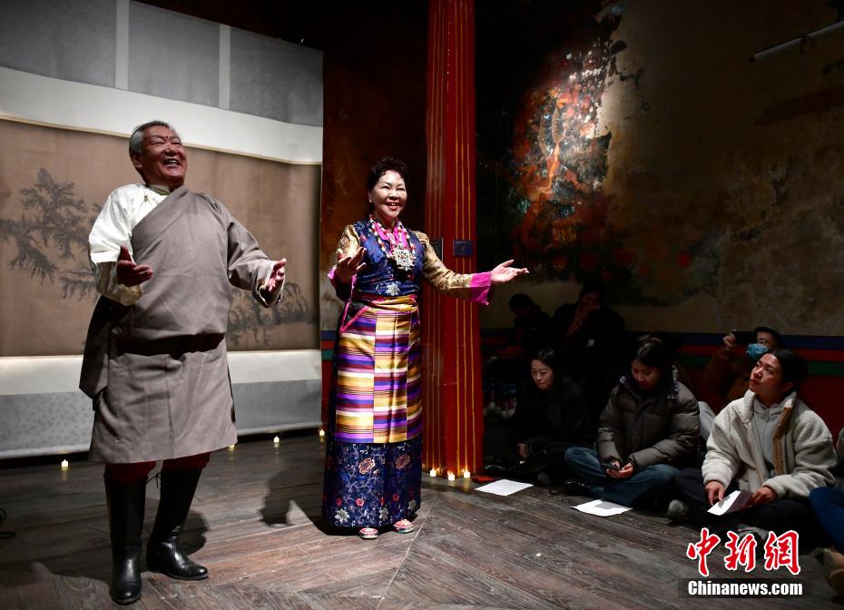 12月23日晚,西藏拉薩吉本崗藝術(shù)中心舉行吉光之夜活動。朗瑪堆諧、扎木念彈唱、熱巴舞等非遺展演,吸引眾多民眾共同領(lǐng)略西藏非物質(zhì)文化遺產(chǎn)的無窮魅力。圖為扎木念彈唱《阿里札達(dá)民歌隆巴》。中新社記者 李林 攝