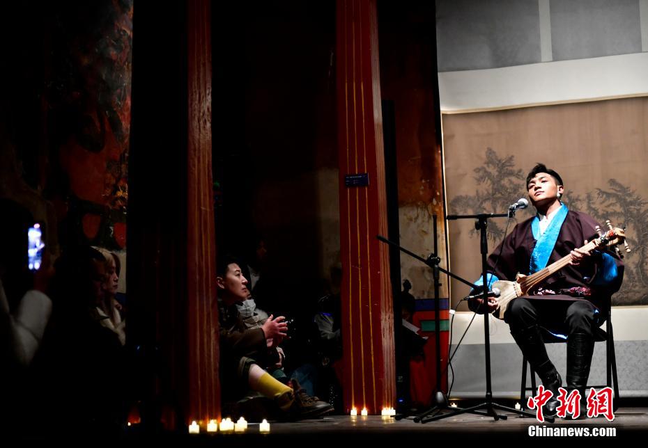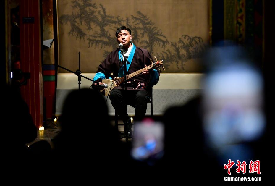 12月23日晚,西藏拉薩吉本崗藝術(shù)中心舉行吉光之夜活動。朗瑪堆諧、扎木念彈唱、熱巴舞等非遺展演,吸引眾多民眾共同領(lǐng)略西藏非物質(zhì)文化遺產(chǎn)的無窮魅力。圖為扎木念彈唱《阿里札達(dá)民歌須彌山》。中新社記者 李林 攝