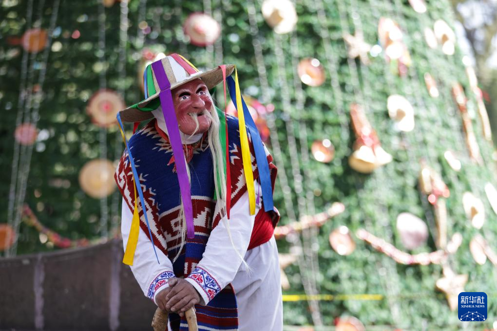 12月7日,在墨西哥米卻肯州的帕茨夸羅,舞者表演“老者之舞”。新華社發(fā)(弗朗西斯科·卡涅多攝)