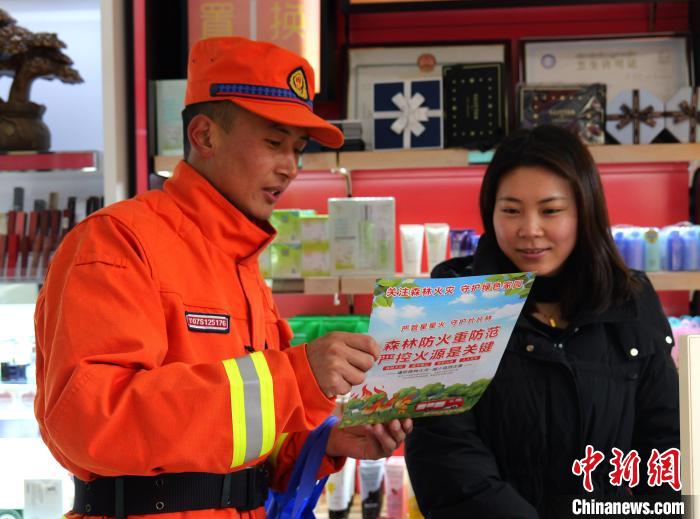 圖為西藏森林消防總隊林芝支隊巴宜區(qū)中隊元旦假期防火專項行動中發(fā)放禮品。西繞拉翁 攝