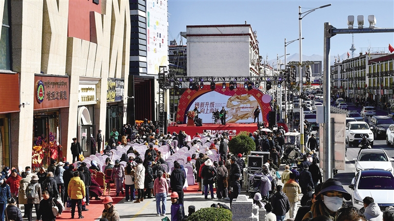 1月1日,拉薩神力時(shí)代廣場(chǎng)歷經(jīng)7個(gè)月左右的裝修升級(jí)后,正式恢復(fù)營(yíng)業(yè),首日銷售額突破300萬(wàn)元,客流量高達(dá)4.26萬(wàn)人次。開業(yè)儀式現(xiàn)場(chǎng)人頭攢動(dòng)、熱鬧非凡,不少市民早早來(lái)到商場(chǎng)外,期待一睹新面貌。“我家就在附近,以前家里人很愛逛這個(gè)商場(chǎng),相信這次裝修升級(jí)后,會(huì)帶給我們?nèi)碌南M(fèi)體驗(yàn)?!崩_市民貢先生說(shuō)。