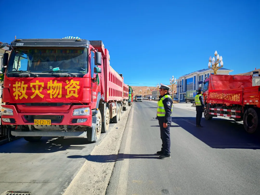 一輛輛物資車,滿載著重振災(zāi)區(qū)的曙光,源源不斷地向?yàn)?zāi)區(qū)輸送急需的生活物資。抗震救災(zāi)分秒必爭(zhēng),交警大隊(duì)、查務(wù)一級(jí)公安檢查站聯(lián)合各鄉(xiāng)鎮(zhèn)派出所的民輔警們化身保通員,在關(guān)鍵路段與交通樞紐織就一張24小時(shí)不間斷的道路保通“守護(hù)網(wǎng)”,全力保障駛向定日重災(zāi)區(qū)的物資運(yùn)輸車一路暢行。破曉,晨曦微露,他們已精神抖擻地站在崗位,為物資車指引方向;深夜,萬(wàn)籟俱寂,他們依舊堅(jiān)守,哪怕嗓音沙啞,仍堅(jiān)定指揮調(diào)度。他們時(shí)刻保持警惕,全力以赴確保這條 “生命通道” 暢通無(wú)阻,讓物資以最快速度送達(dá)受災(zāi)群眾手中。