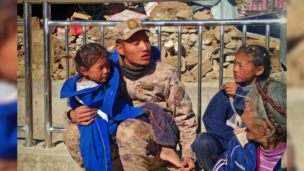 強震后,珠峰腳下的每一個日夜,災情就是命令,生命就是使命。凌晨,記者在措果鄉(xiāng)的物資集散點、群眾安置點看到,大家都在默默守護受災群眾。