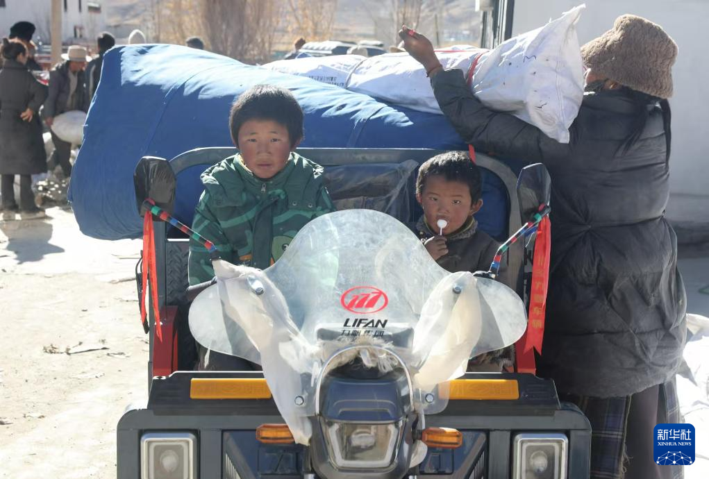 1月9日,受災(zāi)群眾在措布村村委會(huì)領(lǐng)取救災(zāi)物資。新華社記者 姜帆 攝