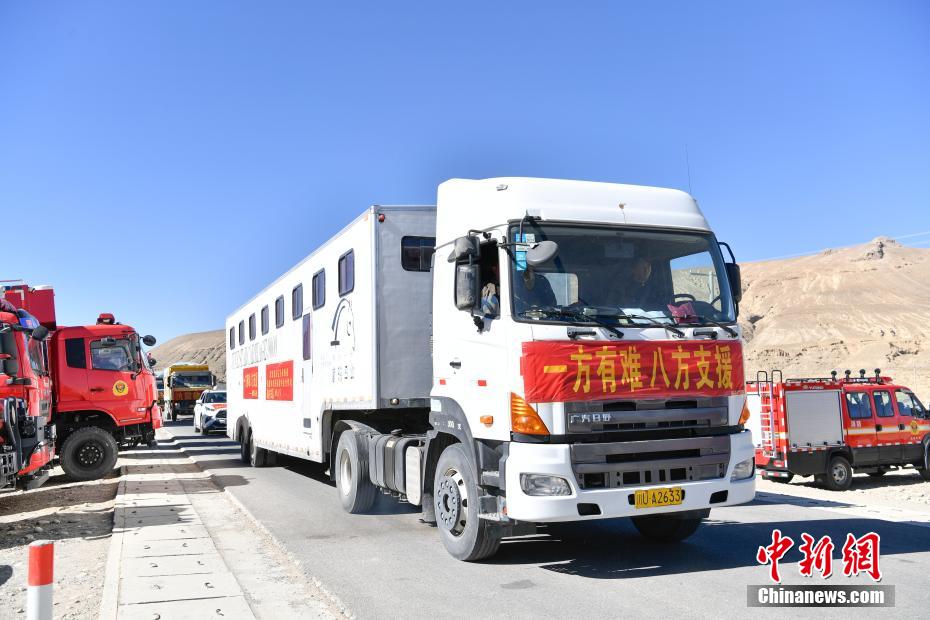 1月9日,西藏自治區(qū)定日縣曲洛鄉(xiāng)措昂村,滿載救災(zāi)物資的貨車抵達(dá)安置點(diǎn)。當(dāng)日,位于西藏自治區(qū)定日縣曲洛鄉(xiāng)措昂村安置點(diǎn),西藏各級救援人員和愛心企業(yè)不斷轉(zhuǎn)運(yùn)、發(fā)放生活物資、搭建活動板房、全力保障受災(zāi)民眾的飲食供應(yīng)等,保障受災(zāi)民眾基本生活。中新社記者 貢嘎來松 攝