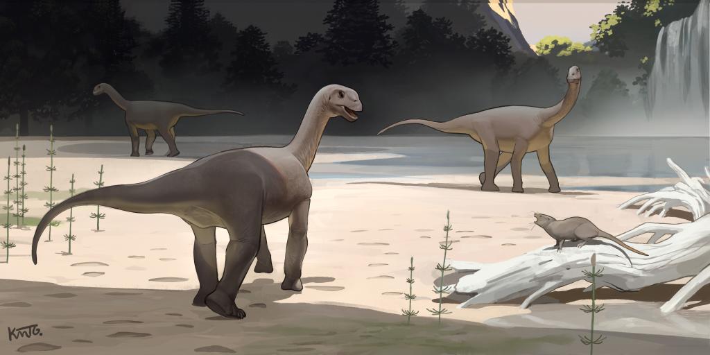 據(jù)了解,蜥腳類恐龍的成年個體與幼年個體有著巨大的體型差異,二三十米長的巨型蜥腳類恐龍,其幼龍剛破殼而出時體長還不到半米。