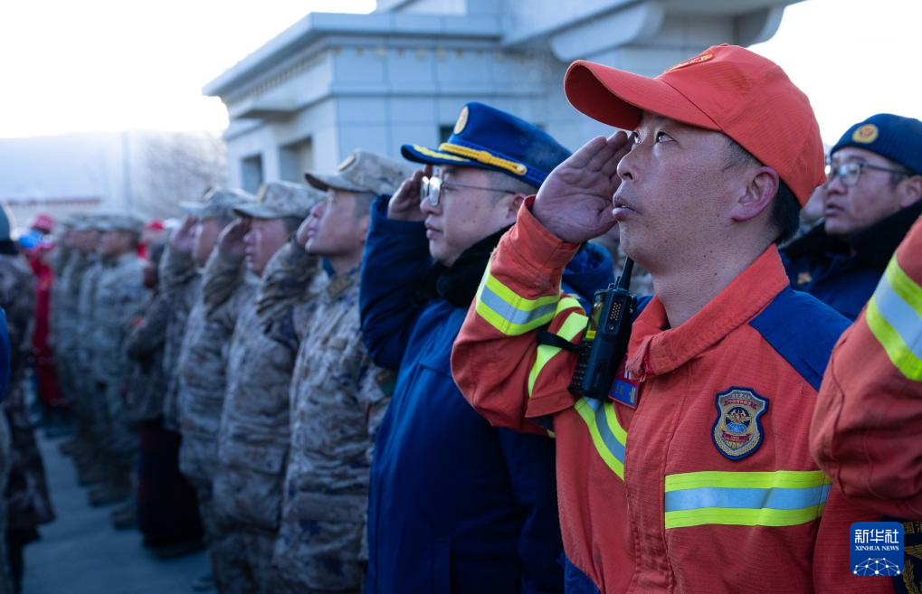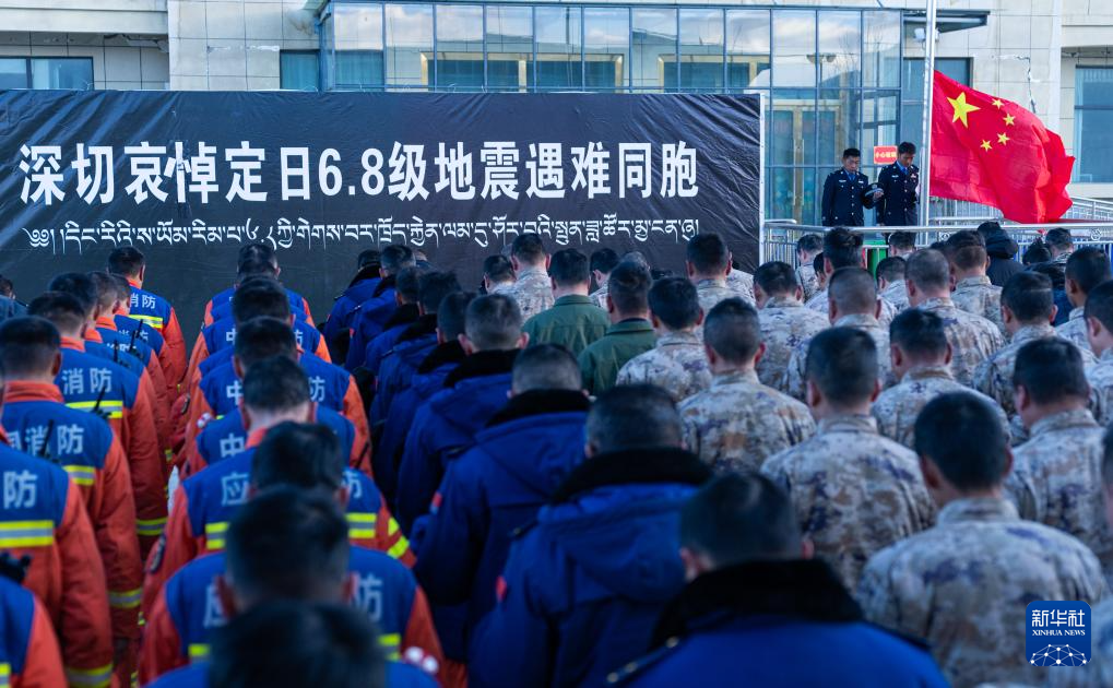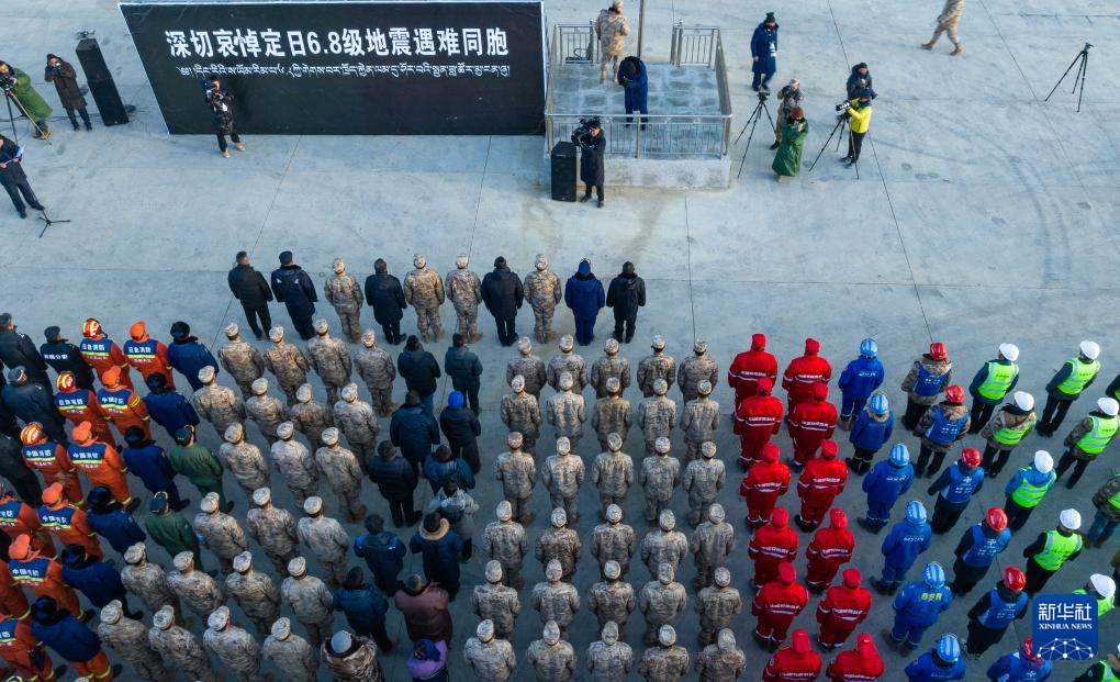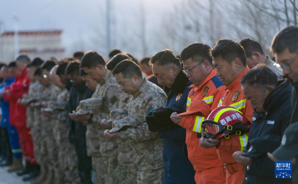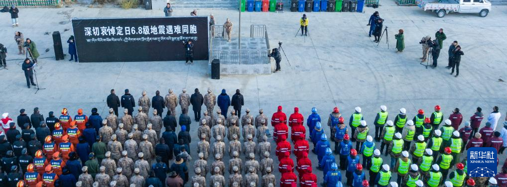 1月13日上午9時30分,西藏定日6.8級地震遇難同胞悼念儀式在受災(zāi)最嚴重的長所鄉(xiāng)舉行。參與救援的解放軍和武警官兵、消防救援人員、公安民警、醫(yī)護人員、青年志愿者及有關(guān)企業(yè)員工、干部職工、震區(qū)群眾代表數(shù)百人,脫帽肅立,向遇難同胞默哀3分鐘。新華社記者 丁增尼達 攝