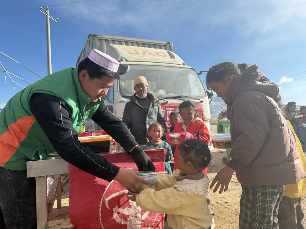 西藏定日6.8級(jí)地震發(fā)生后第二天,看到地震的消息,馬杰和朋友立馬帶上物資奔赴災(zāi)區(qū)救援一線。一行5人從甘肅臨夏出發(fā),驅(qū)車2700多公里,10日到震中后便開(kāi)始給受災(zāi)群眾免費(fèi)做拉面。