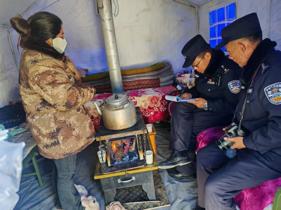 民輔警們穿梭于安置點的帳篷間,每到一處,都與群眾親切交談。“晚上睡覺冷不冷?”“吃飯還習慣嗎?”簡單的話語,飽含著無盡的關切。他們神情專注,認真傾聽群眾的反饋,無論是基本的衣食住行問題,還是特殊的醫(yī)療需求,都詳細記錄在冊。對于行動不便的老人與殘疾人,民輔警們更是格外關注,耐心細致地詢問他們在生活中遇到的種種困難,力求在第一時間給予解。