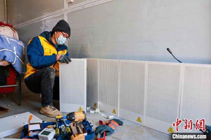 圖為西藏定日地震受災(zāi)地區(qū)的安置板房?jī)?nèi),工作人員正在安裝取暖器。北京慈福公益基金會(huì) 供圖