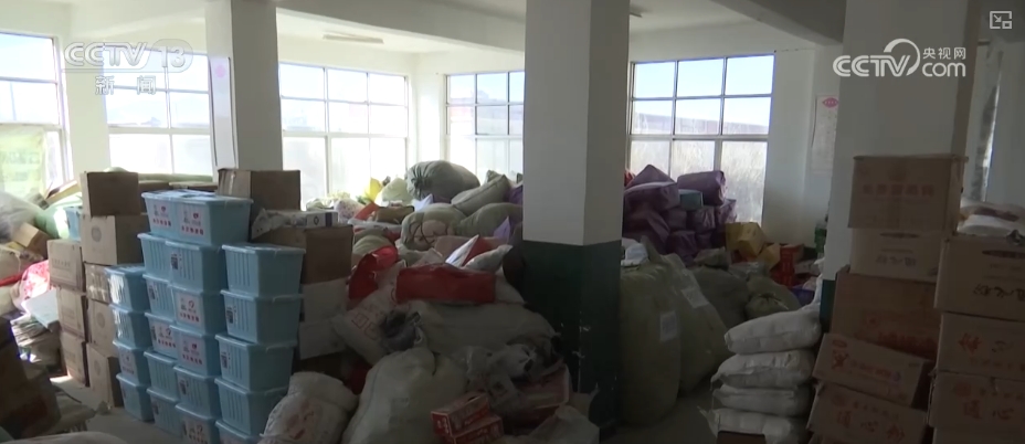 村民們居住的板房面積有限,也不能存放太多的物資,所有的物資都集中在村里的一個小學里,非常充足。