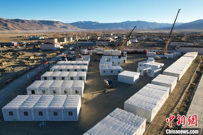 圖為1月10日,西藏定日6.8級地震后,定日縣長所鄉(xiāng)正進(jìn)行施工組裝安置板房。記者 江飛波 攝