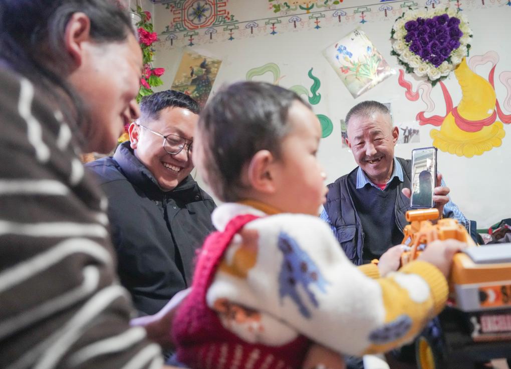 1月29日,孫建學(xué)叫上孫子和老家的家人視頻拜年。新華社記者 晉美多吉 攝