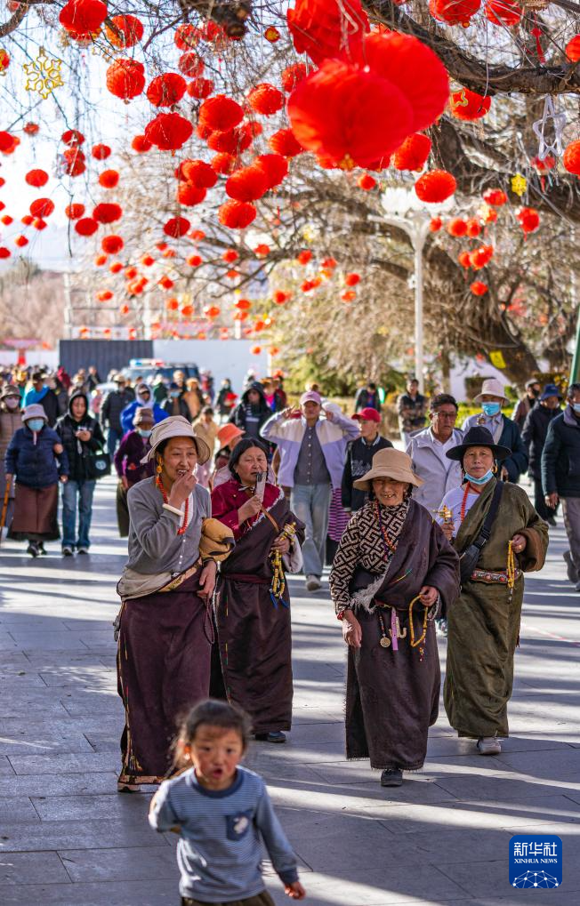 新春佳節(jié)期間,拉薩市在城區(qū)布置了許多春節(jié)裝飾,并開展豐富多彩的文娛活動(dòng)。當(dāng)?shù)厝罕姾陀慰吐健叭展庵恰保惺軡鉂饽晡丁?/p>