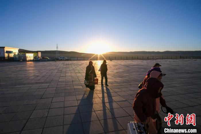 2月3日日出時(shí)分,西藏那曲安多民眾到達(dá)安多火車(chē)站,準(zhǔn)備進(jìn)站乘車(chē)。中新社記者 江飛波 攝