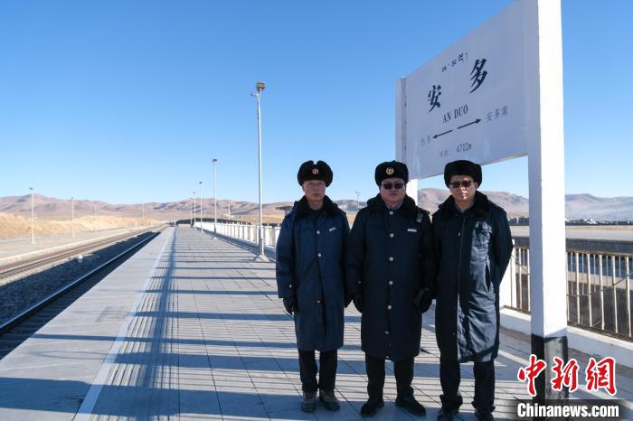 2月3日,青藏鐵路西藏那曲安多站的三位職工,從左至右分別為權(quán)京波、安海平和彭敏。中新社記者 江飛波 攝