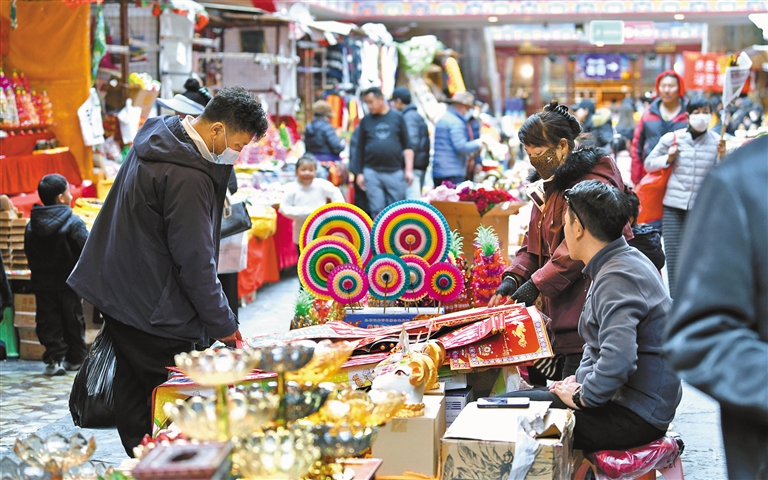 藏歷新年將至,拉薩市大街小巷熱鬧非凡。年貨一條街、超市、商店爭相推出各式年貨,各種商品琳瑯滿目,置辦年貨的人摩肩接踵。古城拉薩在歡樂祥和的氛圍中喜迎藏歷新年。