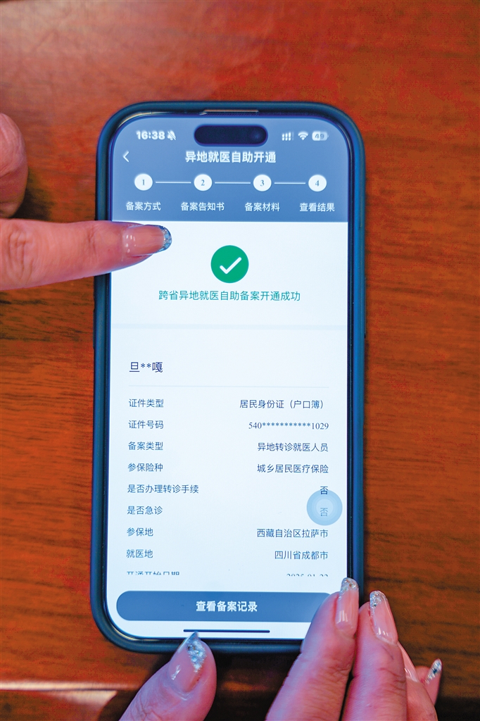 跨省異地就醫(yī)自助備案通過手機小程序開通成功。記者 貢曲羅杰 攝