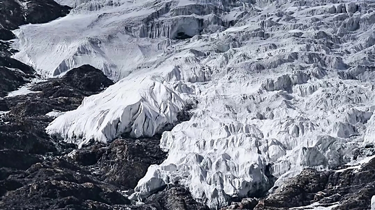 感受完藏歷新年的歡樂氛圍后,便可繼續(xù)前往卡若拉冰川??ㄈ衾ㄊ俏鞑鼐嚯x公路最近的冰川,也是電影《紅河谷》的取景地。盡管已到2月末、3月初,但由于海拔較高,冰川受氣溫回暖的影響較小。在距離卡若拉冰川不遠處,有一處小眾打卡點——恰央措,近年來受到越來越多人的關注。恰央措的藍冰呈深藍色,冰下布滿密密麻麻的白色網狀紋路,景象十分壯觀,拍照效果極佳。