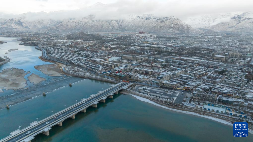這是2月16日拍攝的降雪后的拉薩市區(qū)(無人機(jī)照片)。新華社記者 晉美多吉 攝