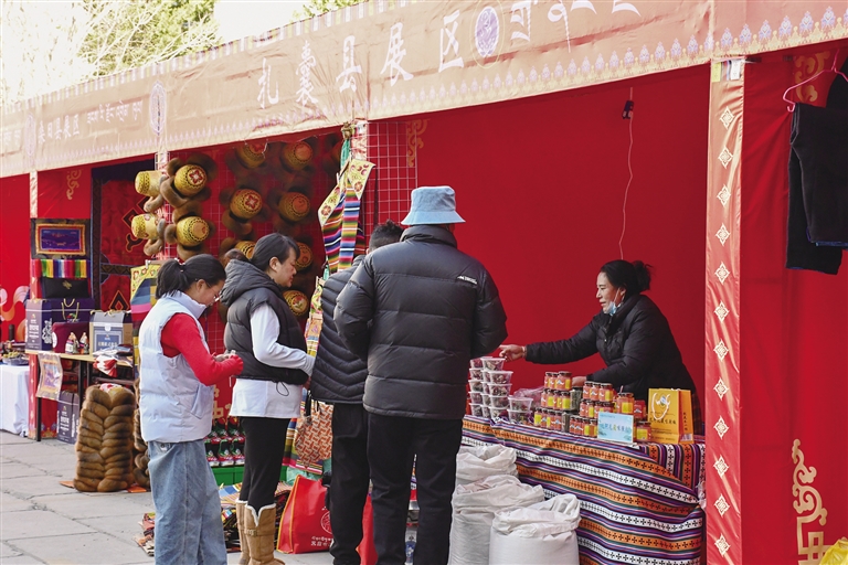 活動(dòng)現(xiàn)場(chǎng),擺滿了各式各樣的山南特色農(nóng)產(chǎn)品,青稞產(chǎn)品、葡萄酒、牛羊肉、民族服飾、手工藝品等應(yīng)有盡有,令人目不暇接,吸引眾多市民停下腳步精心挑選。這些產(chǎn)品既充滿濃郁的地方特色,又是年前備受歡迎的暢銷(xiāo)好物。此次活動(dòng)共有來(lái)自山南的27家商戶參展,帶來(lái)了100余種優(yōu)質(zhì)產(chǎn)品。市民們?cè)诟鱾€(gè)展位之間穿梭,精心挑選著心儀的年貨,每個(gè)人臉上都洋溢著幸福的笑容。