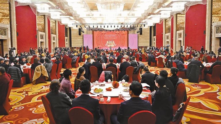 茶話會(huì)上,自治區(qū)政協(xié)常委格桑旺久代表各族各界人士發(fā)言。文藝工作者表演了精彩的節(jié)目,會(huì)場(chǎng)內(nèi)洋溢著歡樂祥和的節(jié)日氣氛。