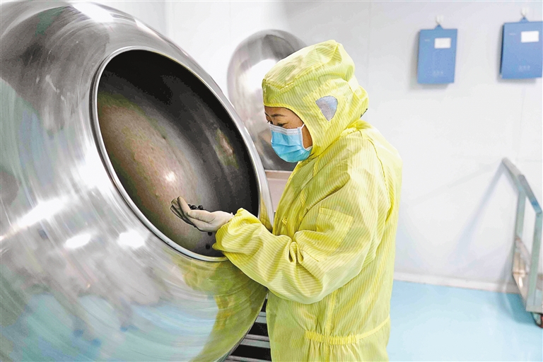 走進(jìn)西藏甘露藏醫(yī)藥產(chǎn)業(yè)集團(tuán)有限公司生產(chǎn)車間,伴隨制丸間轟隆的機器聲,次仁措姆將藥粉均勻撒在機器內(nèi)部,再抓起一把藥丸查看上粉狀態(tài)。次仁措姆是公司生產(chǎn)車間主任,也是一名全國人大代表。