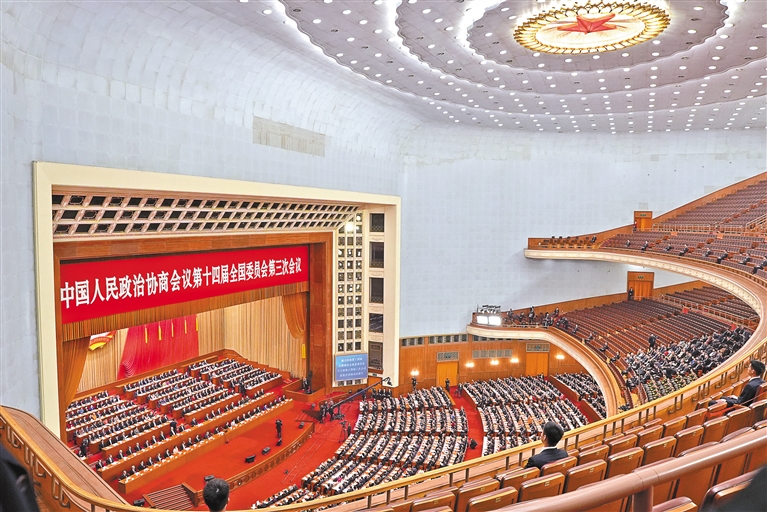 圖為3月10日上午,中國人民政治協(xié)商會議第十四屆全國委員會第三次會議在北京人民大會堂閉幕。記者 旦增平措 次旦央吉 攝