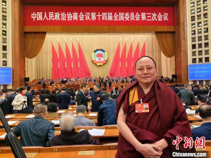 3月7日,全國政協(xié)委員達扎在北京參加中國人民政治協(xié)商會議第十四屆全國委員會第三次會議。(受訪者供圖)