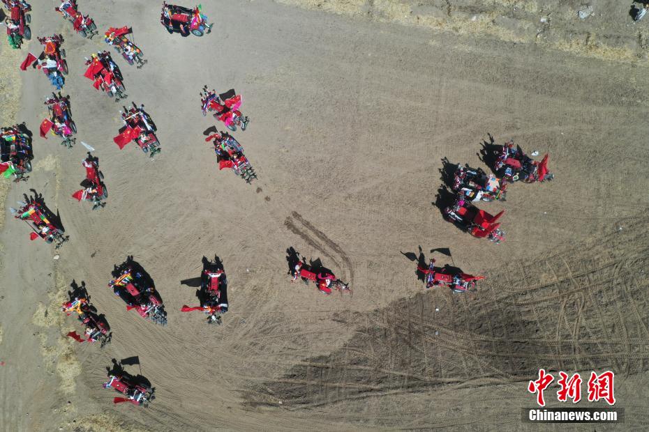 3月16日,西藏拉薩迎來一年一度的傳統(tǒng)春耕儀式。當(dāng)日,拉薩市曲水縣色達(dá)村村民身著節(jié)日盛裝,相聚在田間,載歌載舞,共同迎接春耕第一犁。家家戶戶端著自家的“切瑪”(象征五谷豐登)帶著青稞酒、酥油茶等物品聚在田間,互敬青稞酒,開始撒種,祈求全年風(fēng)調(diào)雨順、五谷豐登。圖為曲水縣色達(dá)村春耕儀式現(xiàn)場(無人機(jī)照片)。中新社記者 貢嘎來松 攝