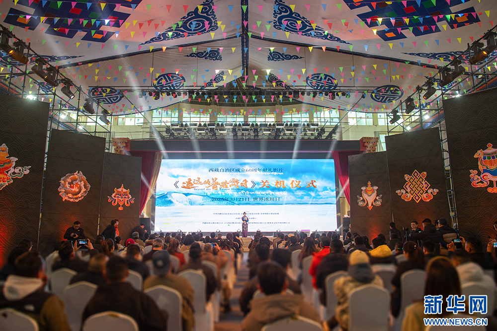 3月21日,主創(chuàng)代表在活動現(xiàn)場分享影片創(chuàng)作過程。新華網(wǎng) 旦增努布 攝
