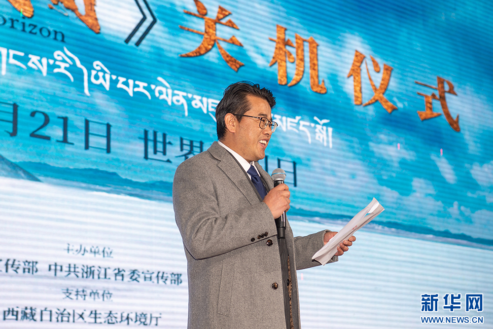 3月21日,西藏出品方代表、西藏影視文化有限公司董事長索朗次仁在活動現(xiàn)場發(fā)言。新華網(wǎng) 旦增努布 攝