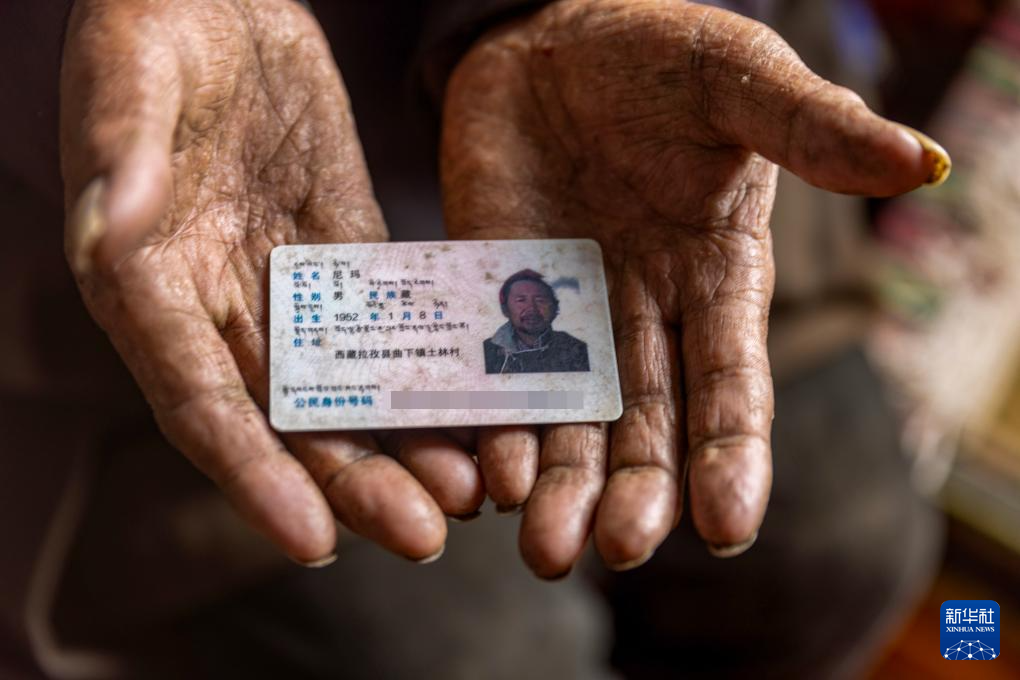尼瑪在展示自己的身份證(3月16日攝)。新華社記者 姜帆 攝