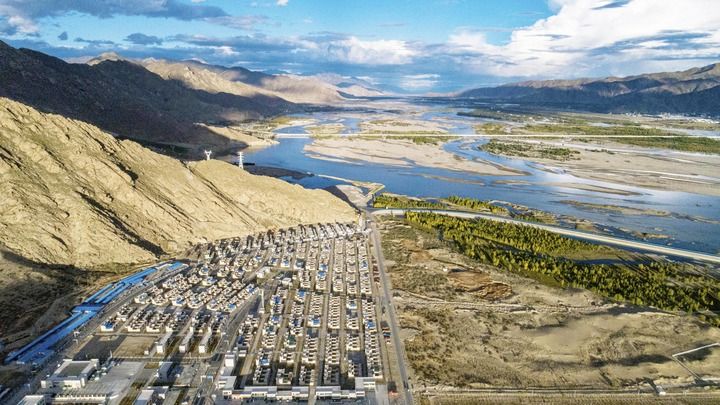 這是位于西藏山南市貢嘎縣的森布日搬遷安置點(2020年9月24日攝,無人機照片)。新華社記者 孫非 攝