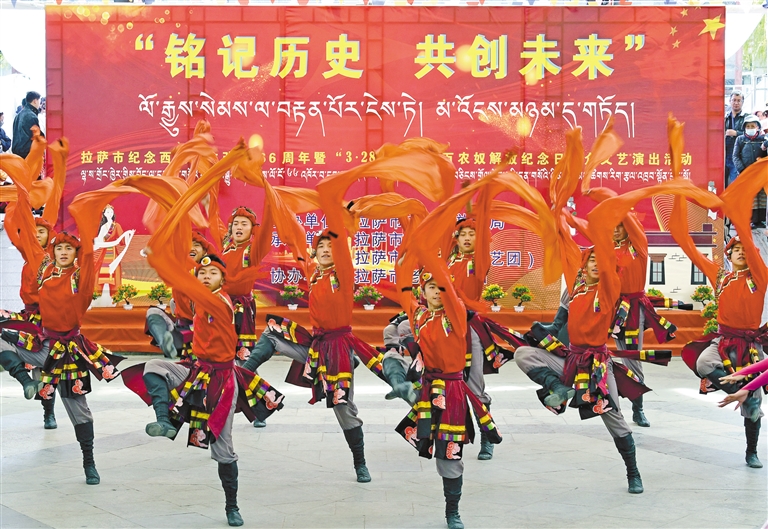 3月28日,拉薩市文旅局在宗角祿康公園舉辦了“銘記歷史 共創(chuàng)未來”拉薩市紀念西藏民主改革66周年暨 “3·28”西藏百萬農(nóng)奴解放紀念日群眾文藝演出。