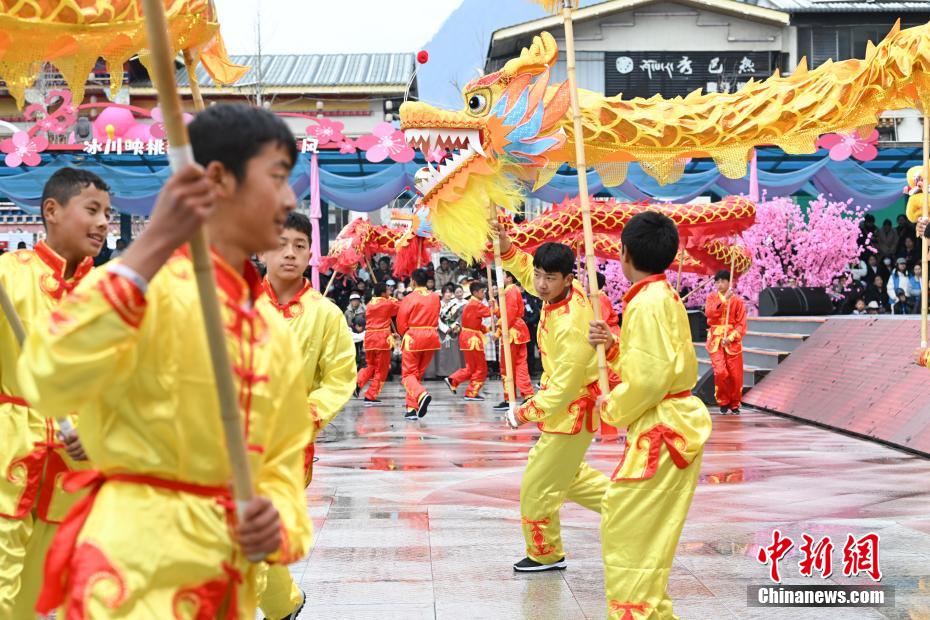 4月1日,西藏自治區(qū)林芝市第二十二屆桃花旅游文化節(jié)波密縣分會場熱鬧開場。本次分會場以“冰川映桃韻波密醉春風(fēng)”為主題,亮點紛呈。開幕式上,極具特色的西藏原生態(tài)歌舞、非遺藏紙舞蹈,生動演繹出雪域文化的迷人風(fēng)情;嶺南龍獅與藏族熱巴鼓相遇,剛?cè)岵?,奏響民族團結(jié)的和諧樂章;“冰川王子”與“桃花仙子”領(lǐng)舞,各族民眾翩然起舞,現(xiàn)場氣氛熱烈?;顒蝇F(xiàn)場,除了精彩文藝演出,特色美食、民俗文化展示區(qū)也吸引眾多游客駐足。大家一邊品嘗當(dāng)?shù)孛朗?,一邊感受民俗文化魅力。?jù)悉,桃花節(jié)將持續(xù)至4月中旬,期間波密縣還安排多場專題活動,誠邀各地游客前來,共赴這場春日浪漫之約。圖為開幕式上表演的舞蹈《鼓韻花開龍獅賀》。中新社記者 貢嘎來松 攝