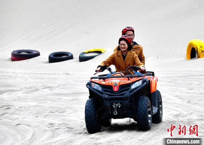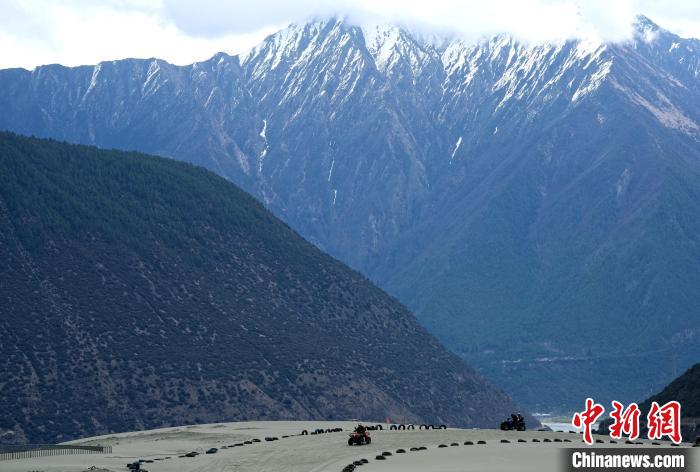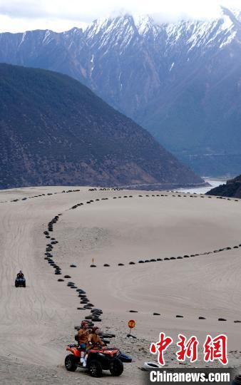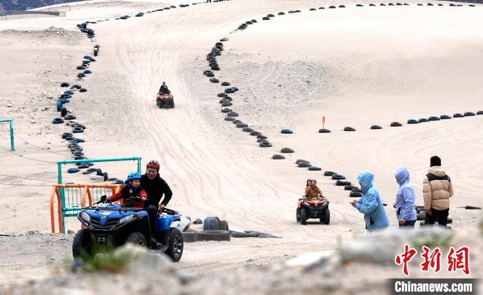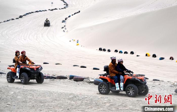 4月4日,游客在西藏米林市丹娘佛掌沙丘景點體驗沙灘車。當日是清明假期第一天,眾多游客在該地游玩,樂享美好春光。丹娘佛掌沙丘位于米林市丹娘鄉(xiāng),因沙丘倒影在雅魯藏布江中形成雙手合十的形狀,故被譽為佛掌沙丘。中新社記者 李林 攝