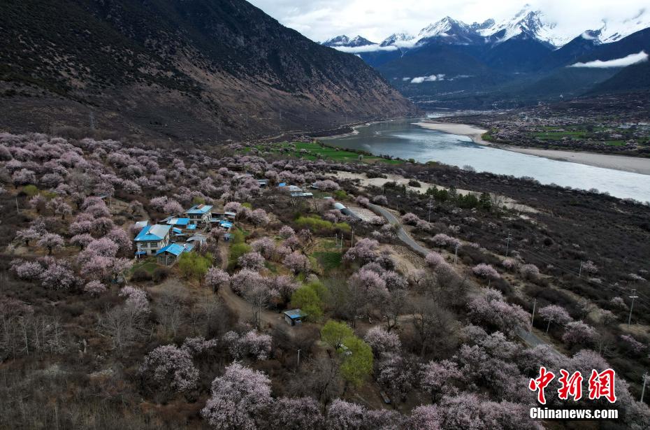 4月4日,西藏林芝市雅魯藏布江沿線桃花風(fēng)光。每年3月下旬,西藏林芝雅魯藏布江沿線桃花綻放,與雪山、鄉(xiāng)村、田野共同組成高原獨(dú)特風(fēng)光,美不勝收。(無人機(jī)照片)