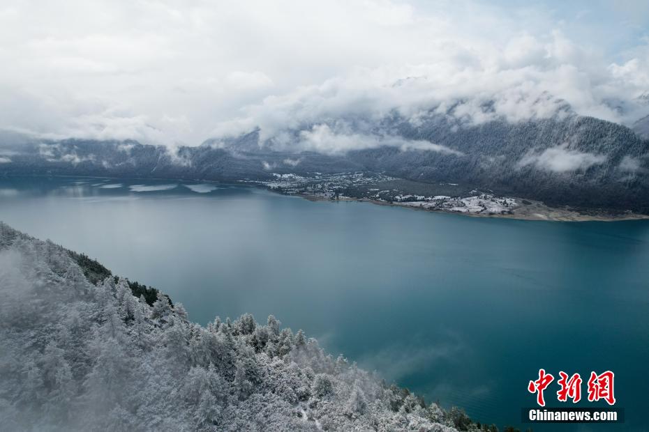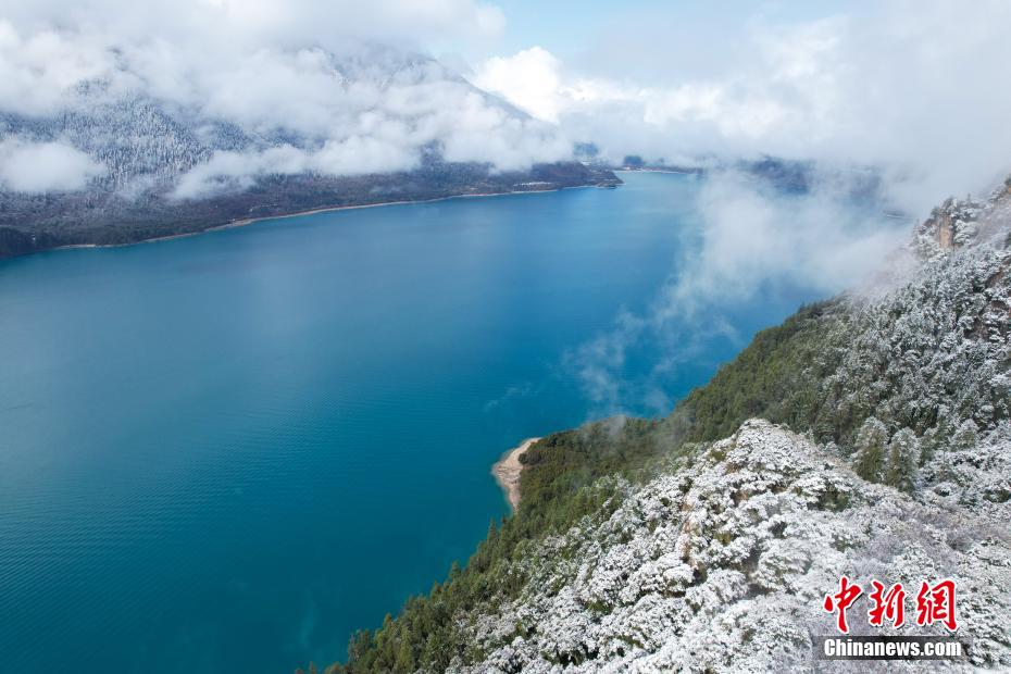 巴松錯(cuò)位于西藏林芝工布江達(dá)縣境內(nèi),地處巴河上游的高山峽谷中,是西藏首個(gè)自然風(fēng)景類國家5A級(jí)旅游景區(qū)。4月5日,巴松錯(cuò)迎來一場春雪,雪后四周原始森林猶如蒙上潔白面紗,湖面宛如一面藍(lán)寶石鑲嵌其中,風(fēng)光如畫。圖為4月5日,巴松錯(cuò)與四周的原始森林和雪山風(fēng)光。中新社記者 江飛波 攝