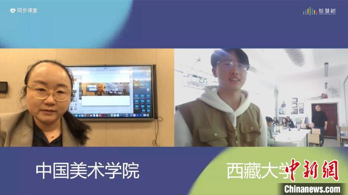 圖為西藏大學(xué)與中國美術(shù)學(xué)院在智慧平臺上進行課堂教學(xué)交流座談會截圖。鄭倩倩 供圖